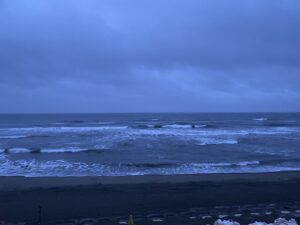 腹前後の弱い南東風で海面はざわつき気味です🏄♂️
